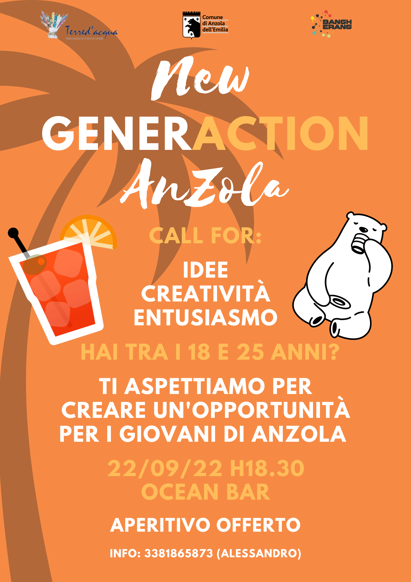 appuntamento giovedì 22 settembre 2022 alle ore 18.30 all'Ocean Bar di Anzola dell'Emilia per uno scambio di idee, creatività, entusiasmo