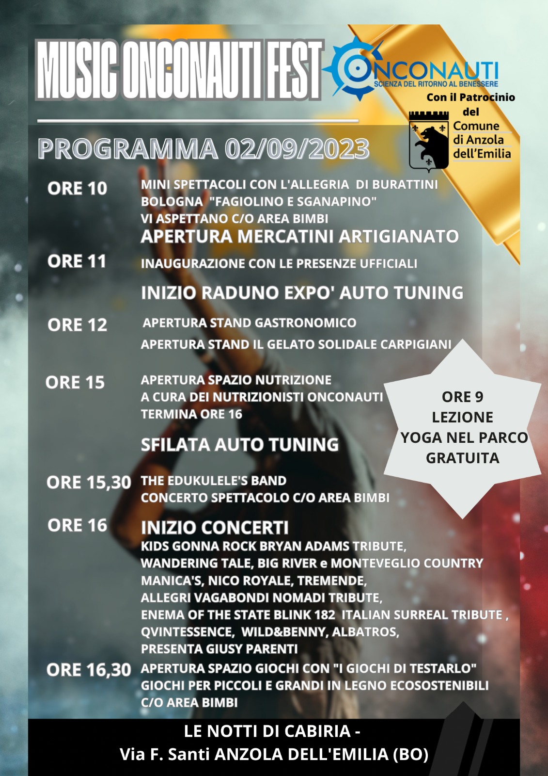 L'evento è organizzato dagli Onconauti con il Patrocinio del Comune.