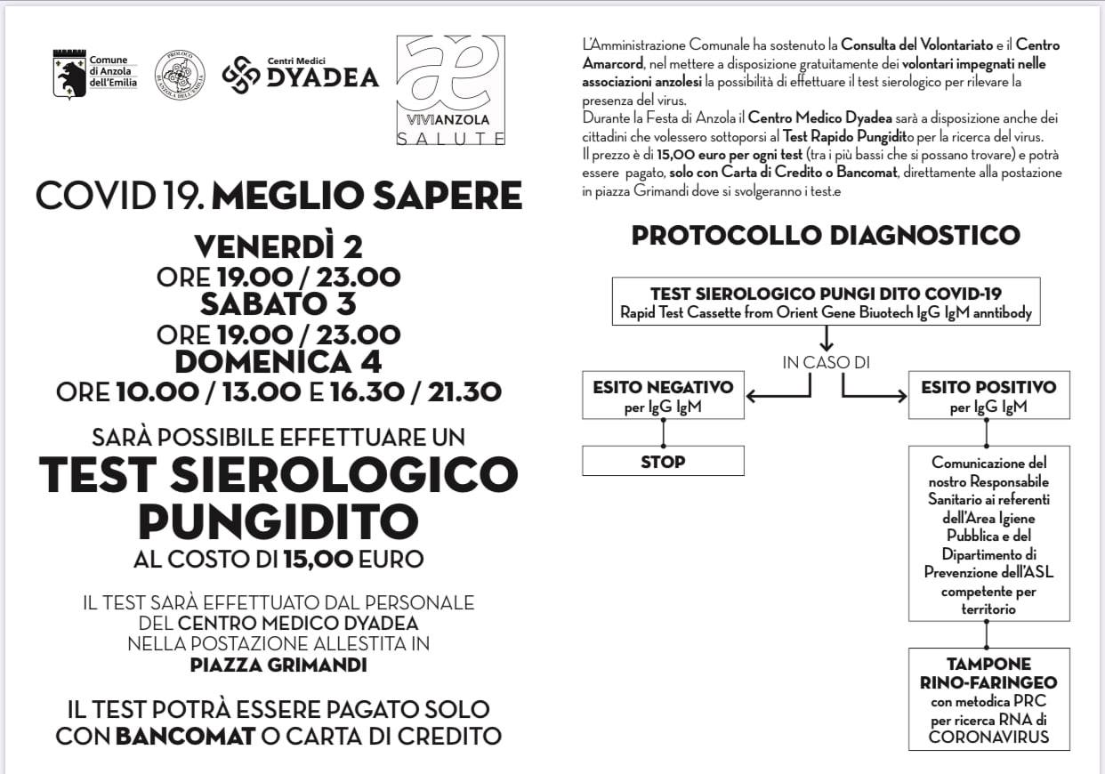 alle NOTTTI DI CABIRIA (via Santi/via Calari - Anzola Emilia) sarà possibile effettuare il test sierologico cromatografico gratuito per i residenti di età tra 18 e 40 anni.