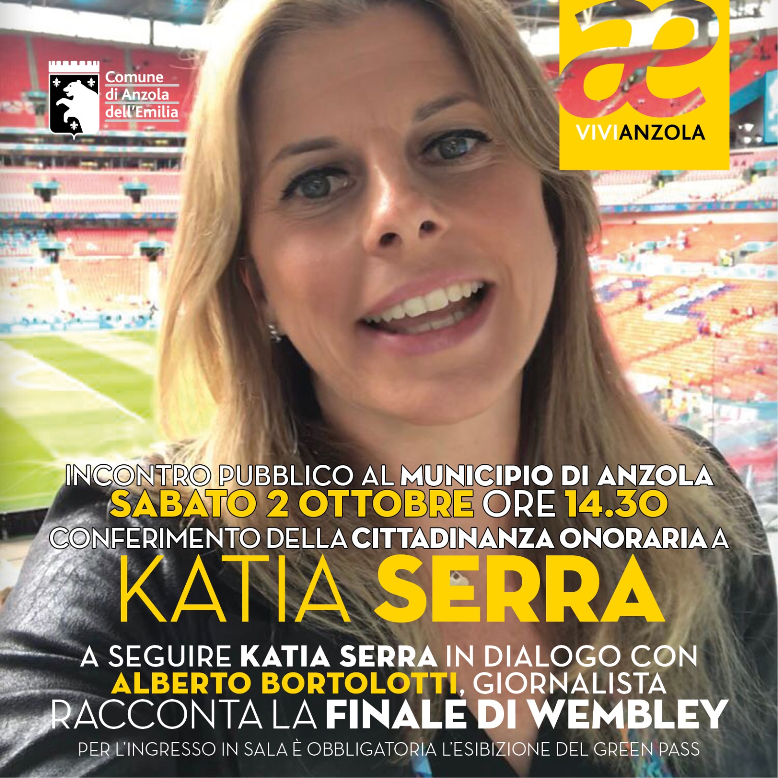 Il Comune di Anzola dell’Emilia darà la cittadinanza onoraria a Katia Serra sabato 2 ottobre, alle ore 14.30, presso la sala Consigliare del Comune di Anzola dell’Emilia.